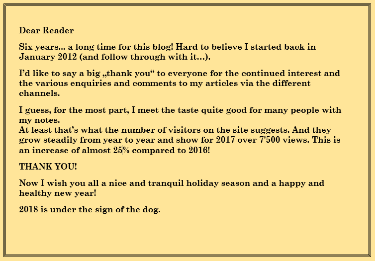 Danke, und ebenfalls alles Gute im Jahr des Hundes.