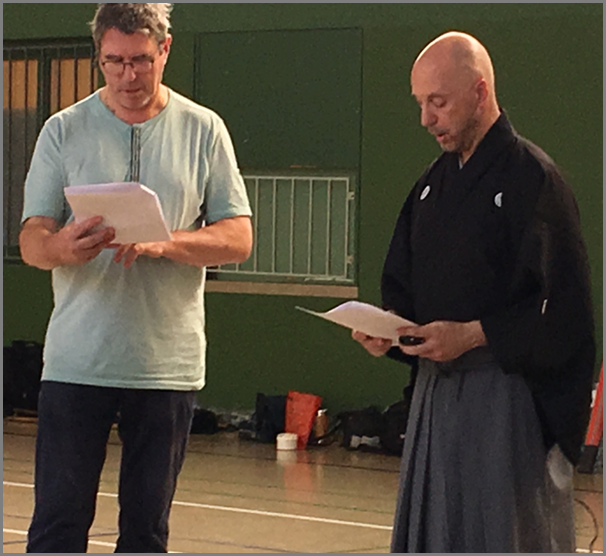 An dieser Stelle bedanke ich mich bei einem anwesenden Basler Aikidōka, der perfekt zweisprachig ist und meinen Vortrag Schritt für Schritt vortrefflich ins Französische übersetzte!