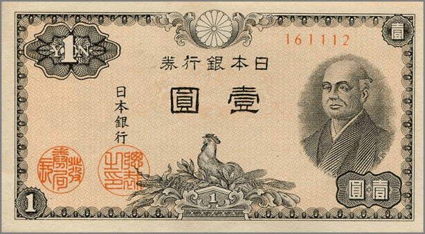 Ein Porträt Ninomiyas hat es auch auf eine japanische Banknote geschafft: die 1-Yen Note, welche zwischen 1946 und 1958 herausgegeben wurde.