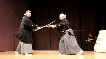 In order to give the audience a feeling how this have looked and been used, Lyutov Dmitry-Sensei from the Hombu-Dōjō and myself as Swiss representative of Hokushin Ittō-Ryū Hyōhō where performing an Enbu of the first two kata of our tradition (of course with live blades).