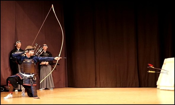 Dressed in a full suit of armour (see picture above), Ōtsuka-sōke started with an explanation about the specifics of early warfare in the Heian era (794 – 1185) and how the bow was the battlefield weapon par excellence and not the famous Japanese sword, which came to prominence as a major fighting weapon only centuries later.