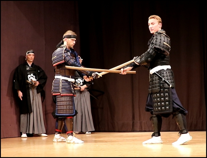 In order to give the audience a feeling how this have looked and been used, Lyutov Dmitry-Sensei from the Hombu-Dōjō and myself as Swiss representative of Hokushin Ittō-Ryū Hyōhō where performing an Enbu of the first two kata of our tradition (of course with live blades).