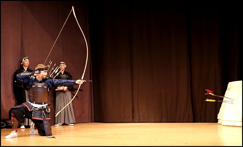 Olah Tamas-Sensei, representative of the Hokushin Ittō-Ryū Hyōhō in Hungary and also a teacher of Heki Tō-Ryū (battlefield archery) was showing several shooting techniques in full armour.