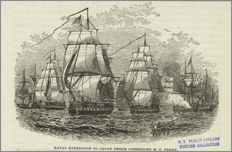 Im Sommer 1853 fuhr der US-amerikanische Commodore Matthew Perry mit einer Flottille von Kriegsschiffen in die Bucht von Uraga in der Nähe von Edo ein, um ein Handelsabkommen zwischen den USA und Japan auf den Weg zu bringen. Es war überdeutlich, dass dieser Forderung auch mit militärischen Mitteln Nachdruck verliehen werden kann.